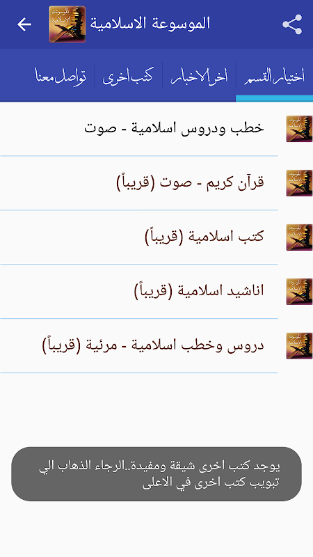 الموسوعة الاسلامية تعتبر مكتبة شاملة لكل من خطب ودروس صوتية اسلامية وكتب اسلامية وقرآن كريم (صوت) وخطب ودروس اسلامية مرئية واناشيد اسلامية