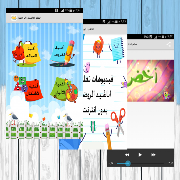 أجمل فيديوهات تعرض الأناشيد التعليمية و الترفيهية عن الخضر و الفواكه و عن فوائدها على صحة الاطفال واغاني الحرف والاشكال والالوان بصيغة فيديوهات mp4 وبدون ايقاع و دون الحاجة للانترنت بعد تثبيتها.