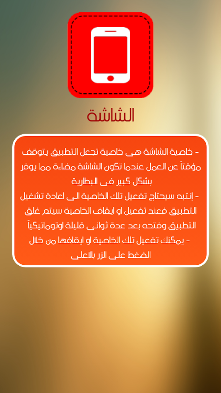 ★ اضافة خاصية عدم الاستخدام عند إضاءة الشاشة لتوفير الطاقة