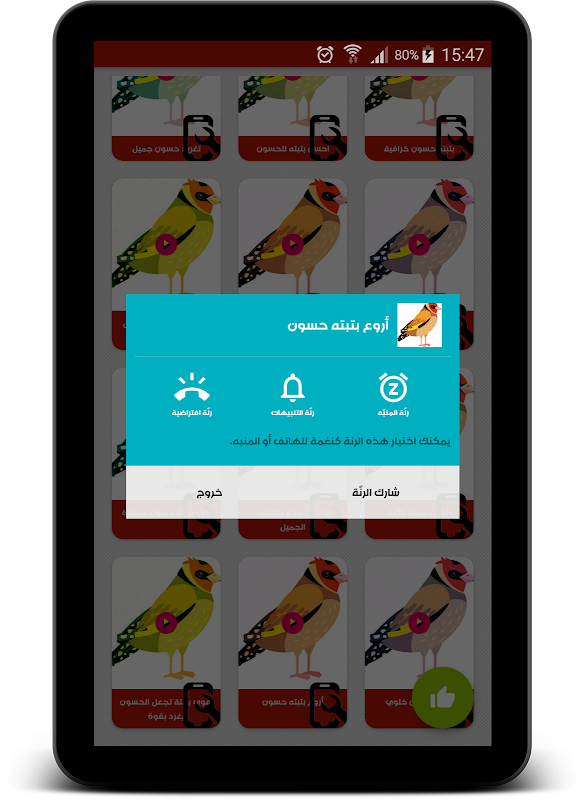 ♫ اختيار أي تغريد بتبته ستستة حسون كرنة الهاتف و المنبه.