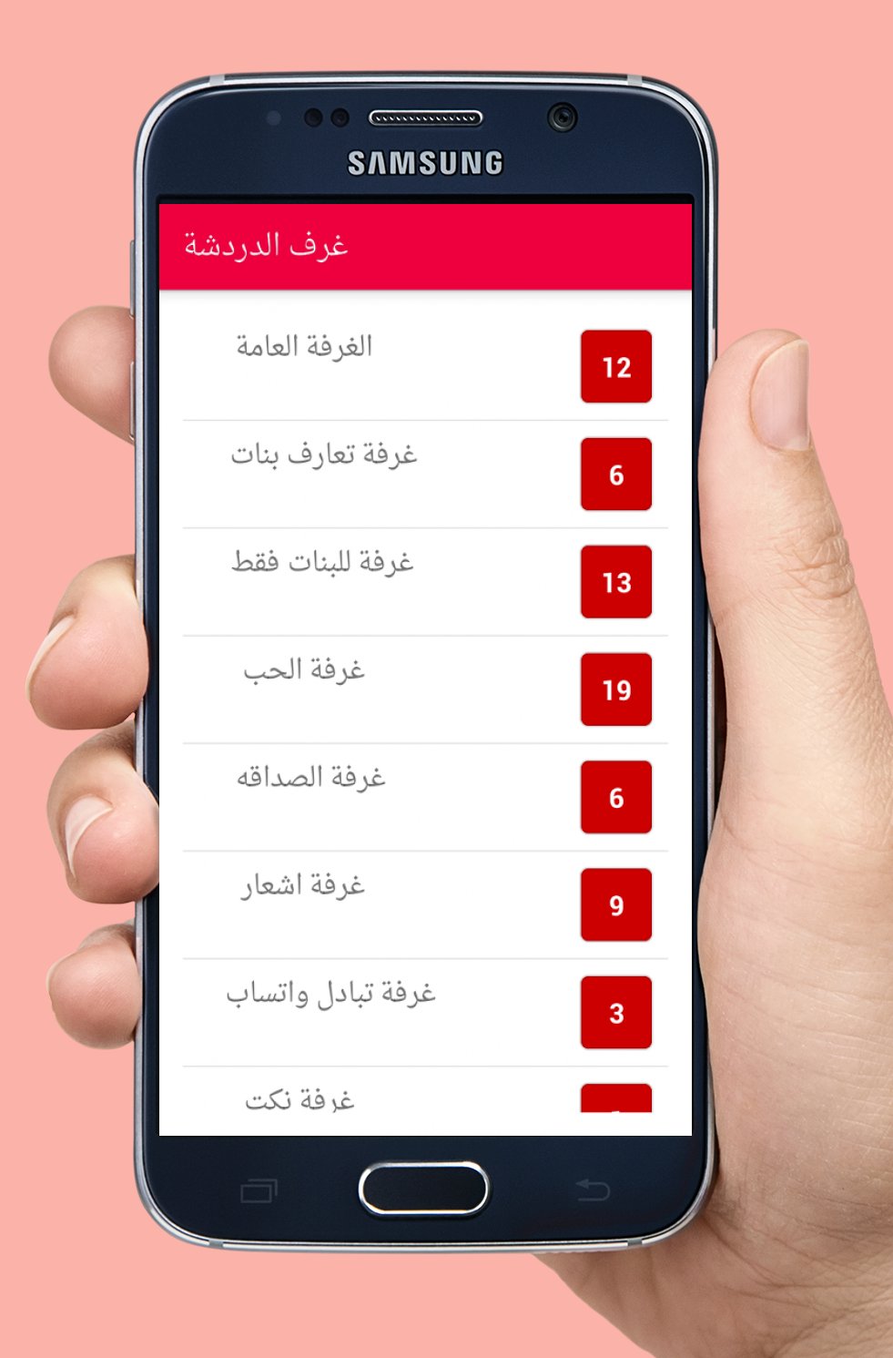 التطبيق يحتوي علي غرف لدردشة مع بنات من مختلف الدول العربية