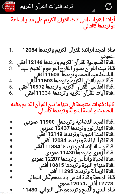 .قائمة القنوات التي ستجدونها و تردداتها :