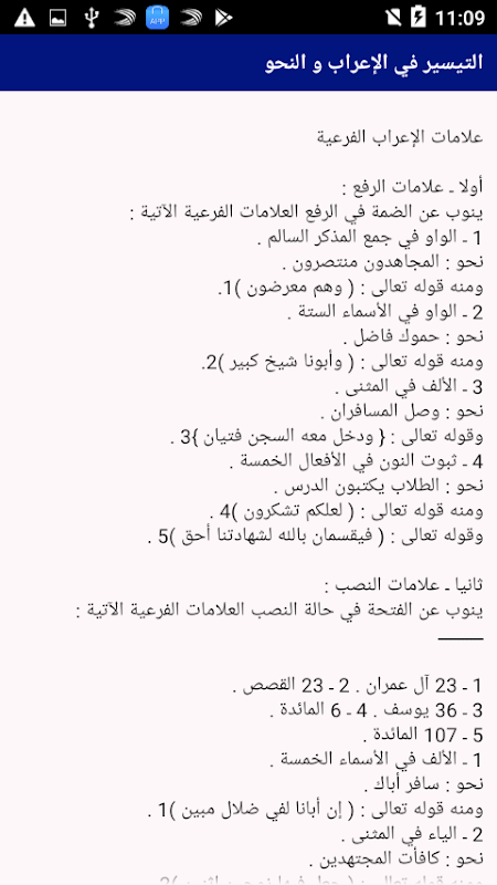 يمكنك التطبيق من تعلم الإعراب بطريقة سهلة وميسرة وكذلك يوفر التطبيق دروس في النحو من أجل تسهيل عملية التعلم