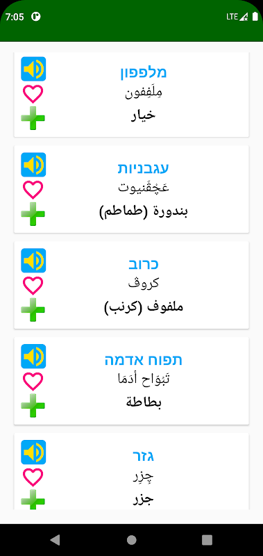 Her kelime ve her cümle İbranice yazılır ve ayrıca kullanıcının kelimeyi veya cümleyi nasıl telaffuz edeceğini bilmesine yardımcı olmak için Arapça dilinde yazılır.