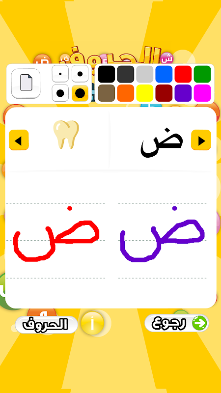 تعليم الحروف العربية تطبيق تعليمي شامل و مسلي يهدف الى تعلم الحروف العربية بطريقة حديثة من خلال دروس و تمارين تمكن المستخدم من تعلم الحروف العربية بدقة