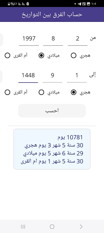 Birincil ve İkincil Takvim: Tercih ettiğiniz birincil takvimi (Miladi, Hicri veya Umm Al-Qura) seçin ve tarihler arasında karşılaştırma ve dönüştürmeyi kolaylaştırmak için altta ikincil bir takvim görünecek ve hem Hicri hem de Miladi takvimlerin her zaman kullanılabilir olduğundan emin olacaksınız.