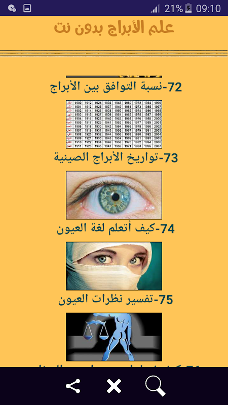 تطبيق توقعات الأبراج لعلم التنجيم والأبراج، ومنها :