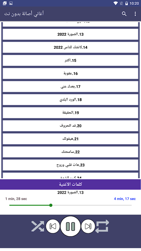 Nostalji 2022, Asala - Jitney'im bozuldu - Ben Allah'ın yabancısıyım - Büyük aşk - Ruhlarını görüyorsun - Aşkın sultanı - Beni seviyor musun 2021 - İnsanlardan şüphe etme Asala Nasri 2022 gibi birçok şarkı bulacaksınız - Seni özlüyorum - bir sırrım yok ve affetmiyorum ve hatıralara ihanet etmiyorum ve o aptal ve 60 dakikalık yaşam Ve ayrıldığı gün ve o benimle ve Akaber'in kızıyla ve ayrıca onunla ilgilendi yüzdüğünü söylediğinde şarkılar ve bir sürü şarkı.Uygulama, net 2020 olmadan Asala Nasri'nin tüm eski ve yeni şarkılarını içeriyor
