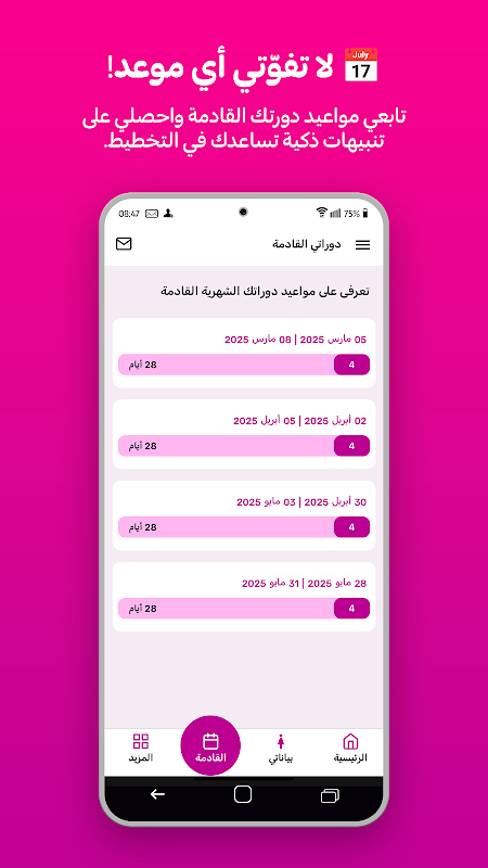 حاسبة الدورة الشهرية الدقيقة 1.0.3
