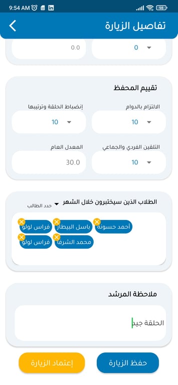 İki bölüm, Noble Kuran'ın ezber oturumlarını yönetmek için bir uygulamadır.