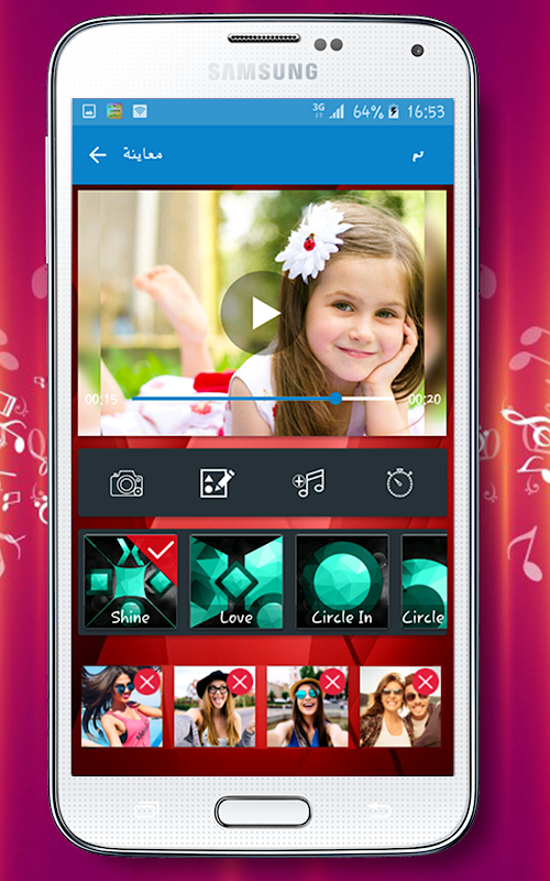 تسطتيع تجميع الصور التى التطقتها مع اصدقائك فى اى مناسبة و اضافة اغانيكم المفضلة وإخراجها فى فيديو اكثر من رائع لمشاركتة ووضعة على الفيس او انستجرام او تويتر او اى سوشيال ميديا