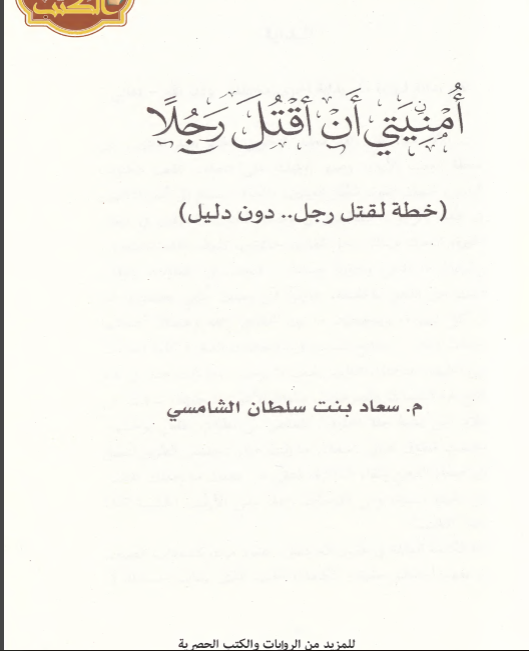 رواية امنيتي ان اقتل رجلا .تعد من افضل الكتب مبيعا في عام 2018 للكاتبة سعاد بنت سلطان الشامسي