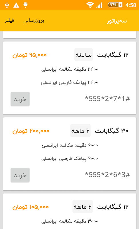 سه پراتور - بسته های اینترنتی اپراتورها 1.0.3