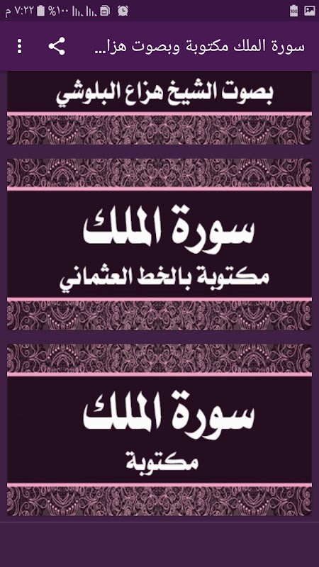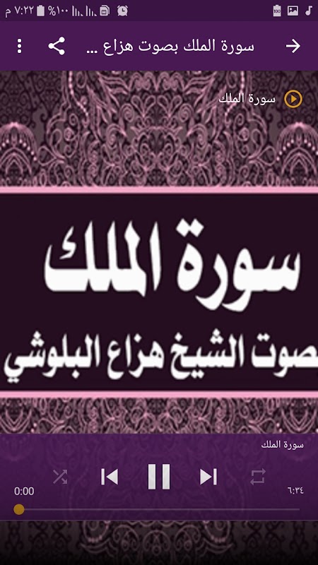 Malek Suresi, tamamı ve Şeyh Hazza Al Balushi'nin sesiyle, kaliteli, güzel ve tatlı sesle yazılmıştır.