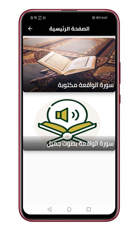 Program, Waqi'ah Suresi'ni yazılı ve sesli olarak içerir ve en harika Arap okuyucuların sesiyle ağ olmadan çalışır.