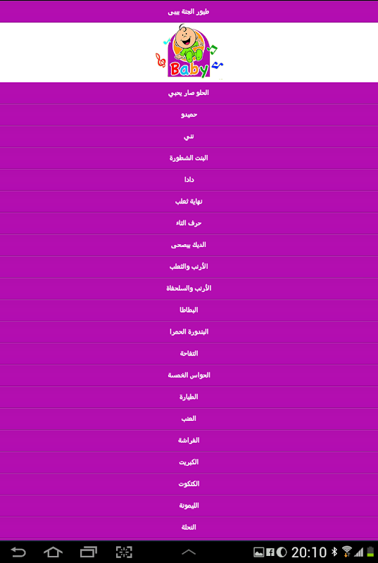 طيور الجنة بيبى يتضمن مجموعه من اجمل واجدد اناشيد واغانى قناة طيور الجنة بيبى التي يحبها الصغار و الكبار أيضا, التطبيق سريع ولا يحتاج الاتصال بالانترنت ليعمل فيمكن الاستماع الى اغانى واناشيد طيور الجنه فى اى مكان بدون الاتصال بالانترنت, نقوم بتحديث البرنامج باستمرار واضافه اغانى جديده.