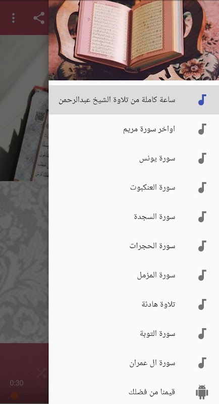 يحتوي تطبيق عبدالرحمن مسعد mp3 - القران الكريم