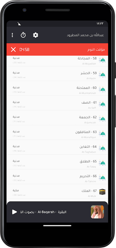 Kur'an-ı Kerim'in okuyucu Abdullah bin Muhammed Al-Matrood'un sesiyle uygulanması, Kur'an-ı Kerim'in tüm surelerini telefonunuzdan veya cihazınızdan duymanızı sağlar
