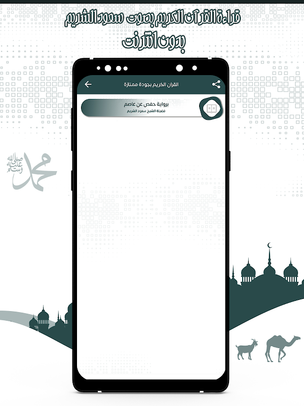 Bahsettiğimiz gibi, Kur'an-ı Kerim uygulamasının Saud Al-Shuraim'in sesiyle arayüzü, genç veya yaşlı kullanıcıların Kur'an-ı Kerim'i dinlemelerini ve uygulamayı karmaşıklıktan uzak bir şekilde kullanmalarını sağlayan basit bir arayüzdür.