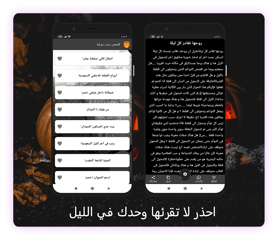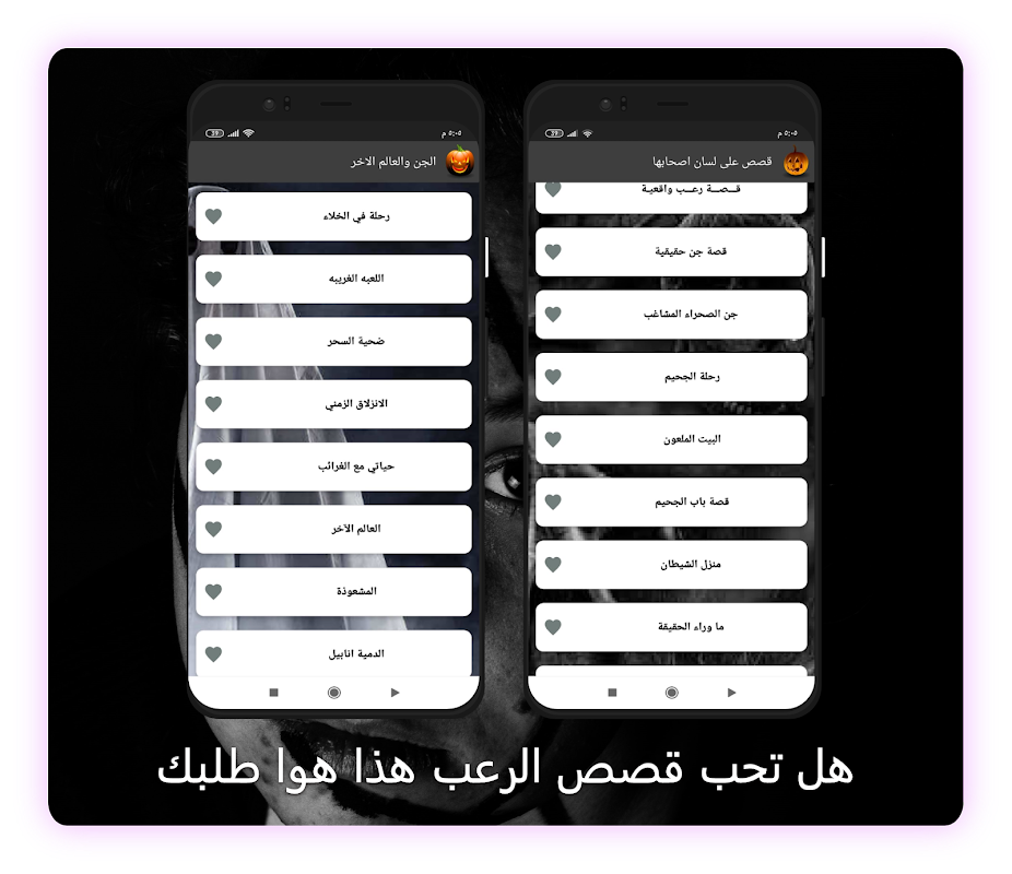 5.000'den fazla korkutucu korku hikayesi içeren Arapça bir uygulama. Zayıf kalplere tavsiye etmiyorum. Çok korkunç hikayeler