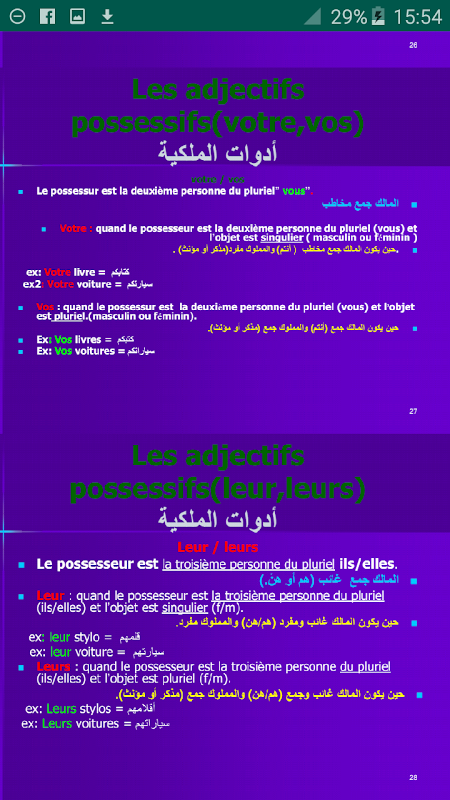 لذلك فمن دواعي سروري أن أضع بين يدي أحبتي هذا التطبيق الهام في تعليم اللغة الفرنسية في أبسط صورة قد تتخيلها وبفضل هذا التطبيق لا تحتاج إلى أستاذ وحتى ما صعب عليك فهمه ستفهمه بكل بساطة.
