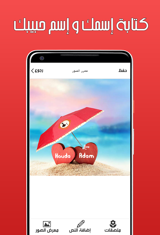ويمكنك التطبيق أيضا من كتابة إسمك وإسم حبيبك في صورة 2020 تطبيق رائع يمكنك من كتابة إسمك و إسم حبيبك في صورة بسهولة تامة دون الحاجة إلى إستعمال برامج تعديل الصور .
