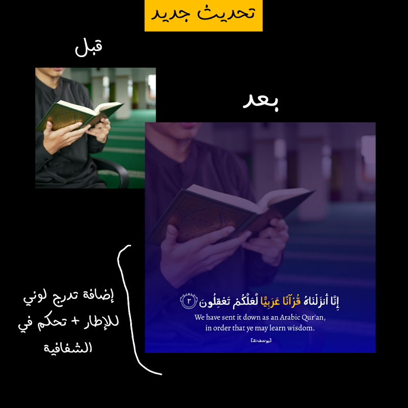 ❤️🩹 Sorun: Arap tasarımcının Kur'an-ı Kerim resimlerini tasarlamak için iki uygulamaya ihtiyacı vardır: Birincisi bir ayet uygulamak, ikincisi ise resim tasarlayıp üzerine yazmak.Uygulama yabancı ise, uygulamayı indirmeniz gerekir. Arapça yazı tiplerini kendiniz yapın ve Kur'an-ı Kerim'in video montajını yapmak istiyorsanız şeffaf arka planlı görüntüler oluşturmanız gerekecektir.