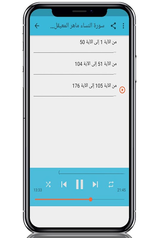 "Net olmadan Maher Al Mueaqly Suresi Nisaa Suresi" uygulaması psikolojik konfor için Net olmadan Al Nisaa Suresi Şeyh Maher Bin Hamad Al Mueaqly sesiyle mütevazı bir okunuş içerir.