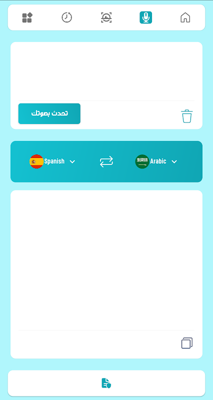 المترجم عربي اسباني يحتوي على خاصية الترجمة بالكاميرا وايضا عن طريق الكتابة والصوت