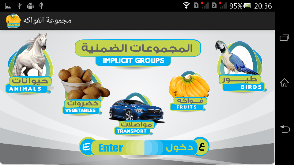 Our App contains five groups of high quality images (Animal – Birds – Fruits – Vegetables - Transportation).