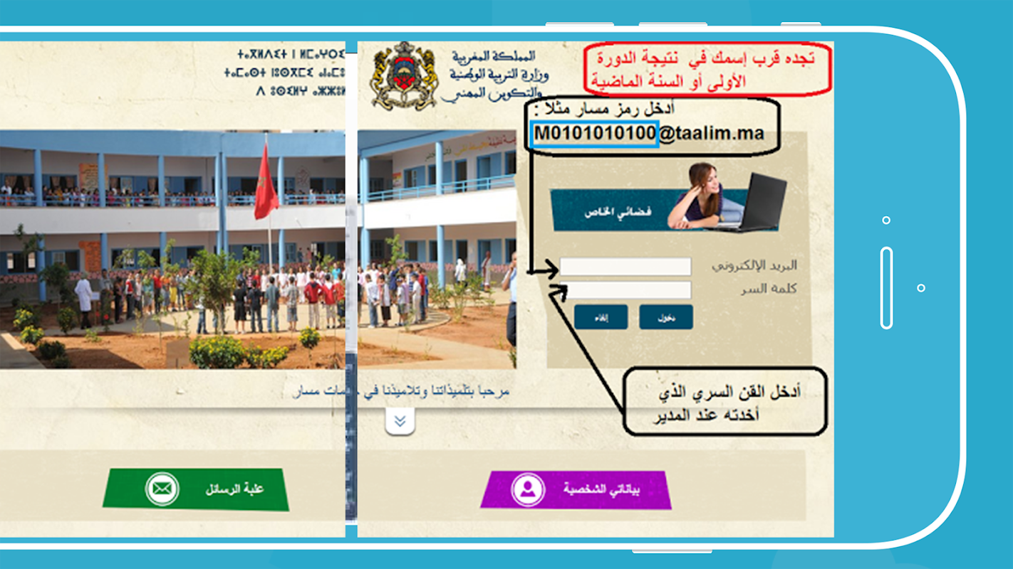 تطبيق موقع مسار و موقع المتمدرس هو عبارة عن بوابة خاصة بتلميذات وتلاميذ التعليم الثانوي التأهيلي و الابتدائي والثانوي الإعدادي يسهل لهم الاطلاع على نقطهم و يحتوي نتائج البكالوريا أيضا .