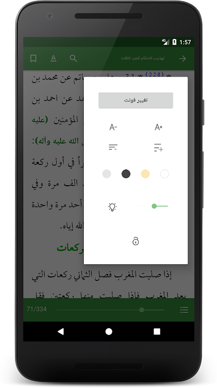 يتميز التطبيق أنه يقدم طريقة عرض مريحة للقارئ، حيث يمكنه التحكم بحجم الخط ونوعه، وتغيير فاصلة الأسطر ودرجة الاضاءة، واختيار الاضاءة الليلية لتسهيل القراءة و...