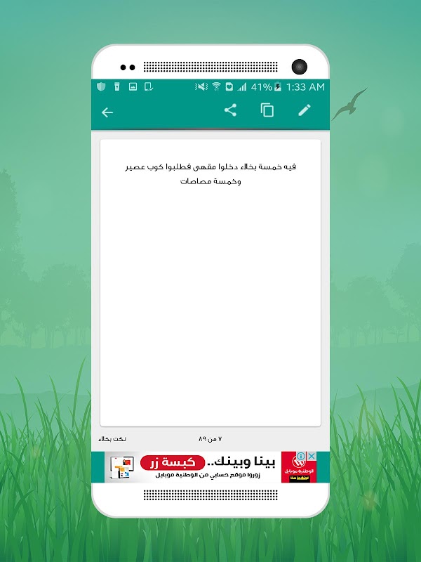 يمكنك مشاركة النكت مع الأصدقاء عبر الفيس بوك والواتس اب وغيرها من التطبيقات