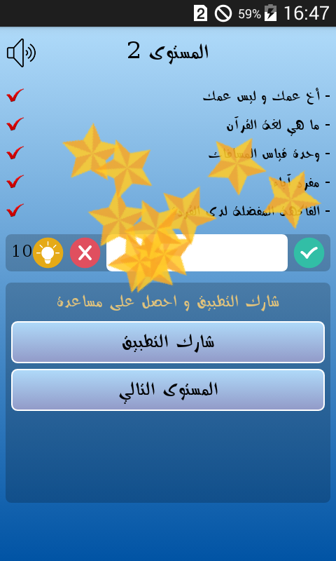 - لديك 10 وسائل مساعدة و يمكنك الحصول على أكثر، يمكنك استخدام مساعدة واحدة للإجابة عن لغز أو سؤال واحد.
