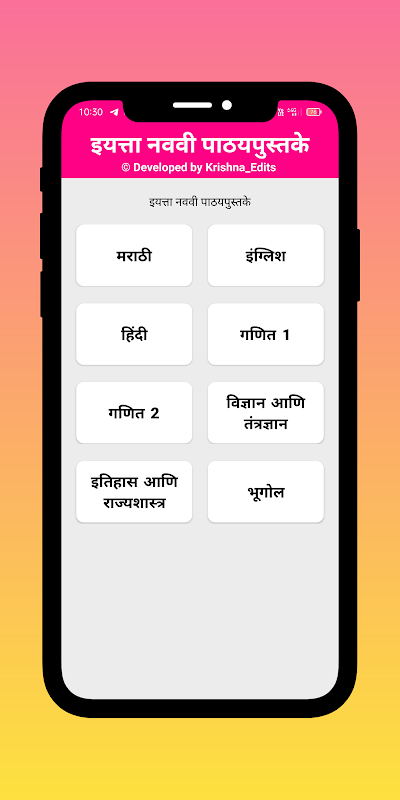Bu uygulamada, biz Krishna düzenlemelerinden geliştiriciler, bu uygulamayı Standart Dokuz Öğrenci için Standart İki पाठ्यपुस्तके için kullanabilirsiniz.