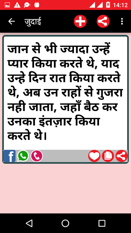 Share beautiful and heart-touching love filled Shayaris (Hindi Messages) with your loved ones on Social Networks, Chats, SMS and E-mail and make them fall in love with you once again with just one click. Enjoy the largest Love Shayari collection on your mobile.