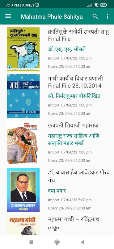महात्मा फुले - सावित्रीबाई फुले यांची सर्व पुस्तके (समग्र व्मय) आणि चरित्र. तसेच इतर पुस्तके : छत्रपती शिवाजी महाराज , डॉ. बाबासाहेब आंबेडकर गौरवग्रंथ, क्रांतिसुक्ते ork, क sos भाऊरपती पाटील पाटील, महात्मा गांधी समाविष केली आहेत आहेत आहेत.