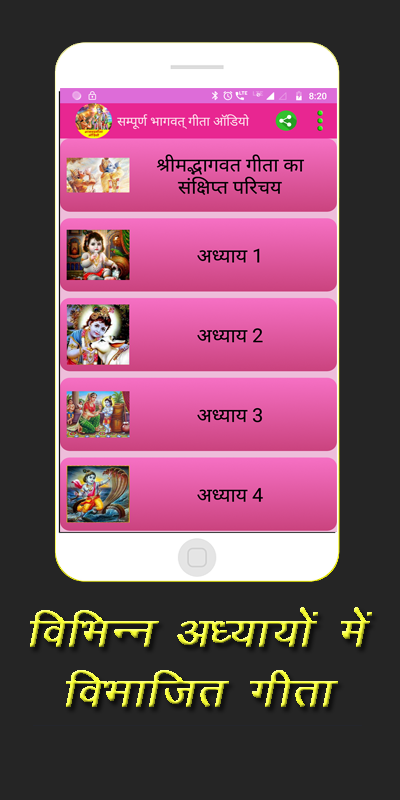 Shree Bhagavadgita'yı mobil cihazlarda güzel bir resimle okuyun ve dinleyin