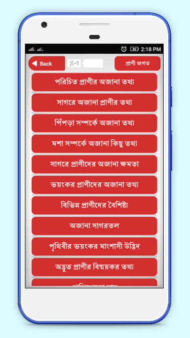 এই পৃথিবীতে সাগরের তলদেশ বন জঙ্গলে অসংখ্য অজানা প্রানি রয়েছে। আর রয়েছে সেই প্রানিদের অজানা সব রহস্য। আজ আপনাদের সামনে প্রানি জগতের সেই অজানা সব তথ্য গুলি নিয়ে হাজির হয়েছি। যে সকল স্টুডেন্ট SSC, HSC, BCS এবং বিভিন্ন ব্যাংক জব এর জন্য লেখা পড়া করছেন তারা এই অ্যাপটি আজই ডাউনলোড করুন। আর প্রানি জগতের অজানা সব তথ্য সম্পর্কে ঘরে বসেই জানুন। বন্ধুরা এই অ্যাপটি ব্যবহার করার জন্য আপনাদের ইন্টারনেট এর প্রয়োজন নেই। এই অ্যাপটি সম্পূর্ণ অফলাইনে কাজ করে। তাই আর অপেক্ষা না করে আজই আপনার মোবাইলে আমাদের এই অজানা সব তথ্য প্রাণী জগত সাধারন জ্ঞান অ্যাপটি ডাউনলোড করে নিন।
