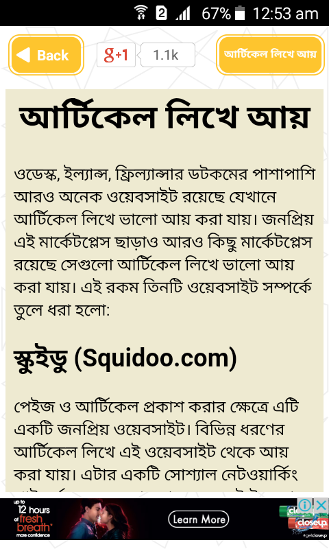আমরা এই অ্যাপ এ অনলাইনে আয় করার বেশ কয়েকটি কাজ বাতলে দিয়েছি যদিও অনলাইন ইনকাম করার অসংখ্য পদ্ধতি আছে। আমরা এখানে অনলাইনে টাকা আয় করার সহজ কয়েকটি কাজ ( ফ্রিল্যান্সিং ও আউটসোর্সিং সহ) উল্লেখ করেছি।