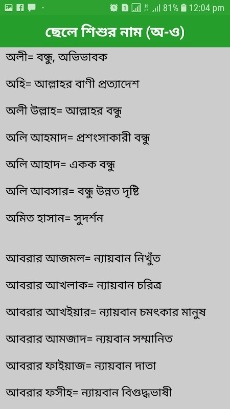 অর্থসহ ইসলামিক নাম Islamic Name With Meaning'in eski sürümleri