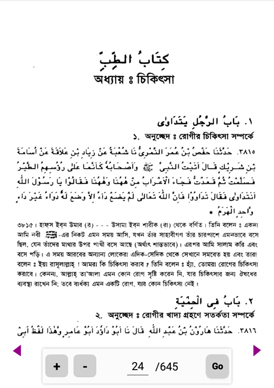 Tüm bölümleri ve tüm hadisleri içeren Abu Dawood Sharif Koleksiyonu Bangla Hadis Uygulaması