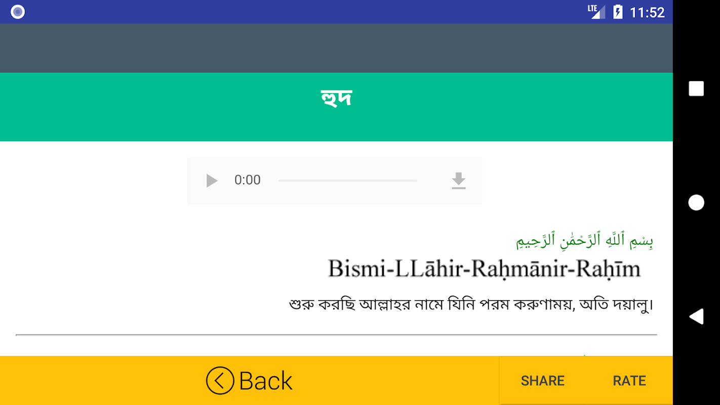 Her ayetin bir çevirisi var. Arapça telaffuz ve Bengalce anlamı. El Kuran parası ile ses kullanma son derece kolaydır. Arama seçenekleri var. Tüm Al-Kur'an-ı Kerim bu uygulaması ile cebinizde olacak.