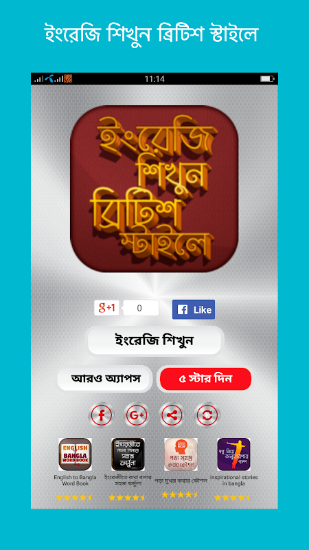 ইংরেজি “ইংরেজি শিখুন - স্পোকেন ইংলিশ” এ্যাপটিতে সমস্ত বিষয় বিস্তারিত আলোচানা এবং ধাপে ধাপে অনুশিলনের উপায় বলে দেয়া আছে। আ্যাপের নির্দেশনা অনুসরন করলে খুব সহজেই কম সময়ে আপনি ব্রিটিশ ইংলিশ রপ্ত কতে পারেবে। আ্যাপটি ভাল লাগলে বন্ধু-পরিবারের সাথে শেয়ার করে তাকেও শেখার সুযোগ করে দিন। আপনার মূল্যবান মতামত জানতে কমেন্ট করুন। আমাদেরকে আ্যাপ তৈরীতে উৎসাহ দিতে পাঁচ তারকায় চিন্হিত করুন।