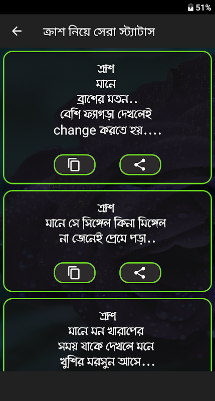 বন্ধুরা তোমাদের কাছে যদি এই অ্যাপটি ভালো লেগে - আর যদি ছন্ধ ও স্ট্যাটাস পড়ে মজা পেয়ে থাকো তাহলে বেশি বেশি শেয়ার করো।