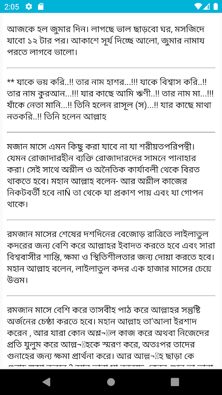 ইসলামিক এসএমএস অ্যাপটি-নামাজ, রোজা, রমজান, কুরান, শবে কদর, জুমার নামাজ ও উপদেশমূলক ইসলামিক এসএমএস সাজানো হয়েছে এই অ্যাপটিতে।
