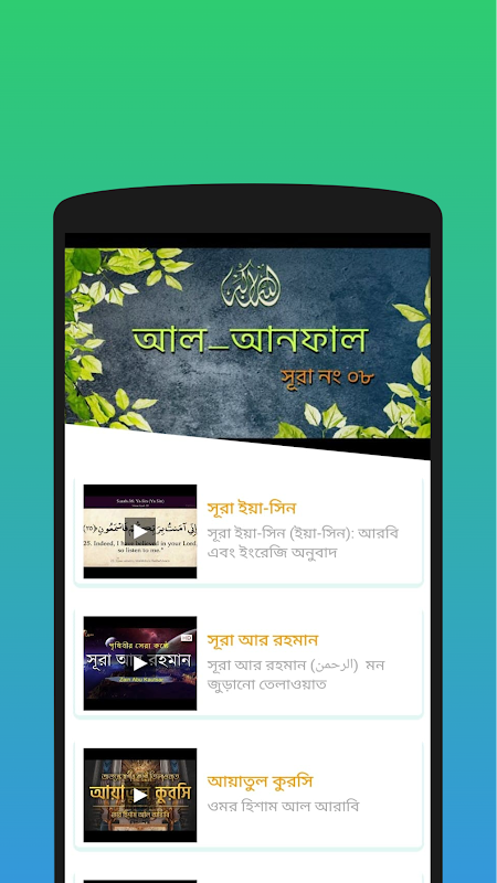 5টি ভিন্ন বিভাগ আছে, যেখানে আমি বেশিরভাগই সূরা,গজল,কুরআন তিলাওয়াত,হাদিস,দোয়া.100+ ইসলামিক বিষয়বস্তু অন্তর্ভুক্ত করেছি