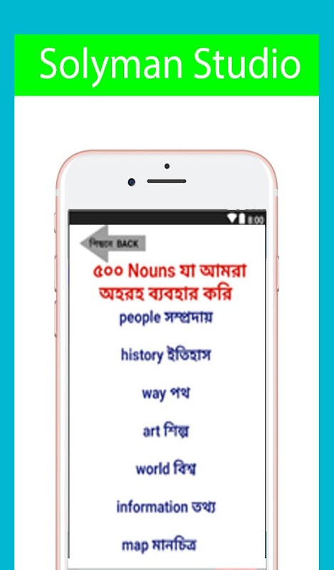 So learn english vocabulary using this application.word book english to bangla is a offline english to bangla vocabulary for them who wants to learn english word in Bangla.This kind of offline english to bangla dictionary app . We you use it anytime you want without data connection.To improve English vocabulary. In this application 5000+ vocabulary words with meaning bangla and english. If you want to expert in spoken english to bengali then you must need to use this application.Beside spoken english this app helps you to improve in english vocabulary. It also help you to translate any word into english to bangla or bangla to english. In this application we organize many words with pronunciation and bangla meaning.You will find english vocabulary learning is very easy and simple through many category.