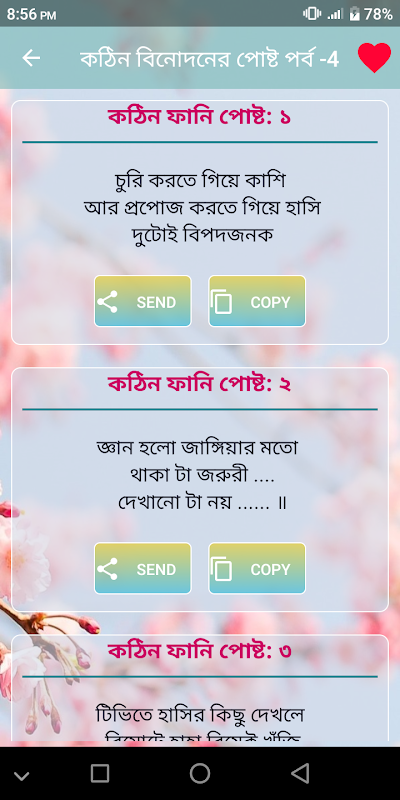 কঠিন বিনোদনের পোষ্ট অ্যাপসটি রয়েছে সুন্দর সুন্দর সব পোষ্ট যা অনেক সুন্দর নতুন ভাবে সাজানো হয়ে।মন খুলে বিনোদন চাইলে আমাদের এই অ্যাপসটি আপনার জন্যই। আপনাকে আর কষ্ট করে মজার মজার পোষ্ট খুজতে হবে না এই অ্যাপসটিতে আছে অনেক অনেক মজার পোষ্ট আর ক্যাপশন।