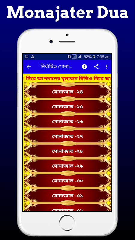 আমরা মুসলমান হওয়া সত্তেও অনেকে আছি কিভাবে দোয়া করতে হয় জানিনা। বা আরবীতে গুরুত্বপূর্ণ মুনাজাতের দোয়াগুলো জানিনা। অথচ মুসলমান হিসেবে এই দোয়াগুলো জানা আমাদের দরকার। আমাদের এই এ্যাপটি তৈরি করা হয়েছে যেন আপনারা সহজে কোরআনের গুরুত্বপূর্ণ দোয়া গুলো শিখতে পারেন। এ্যাপটিতে কোরআন থেকে বাছাই করে কিছু গুরুত্বপূর্ণ দোয়া সংযুক্ত করা হয়েছে। দোয়াগুলো এমনভাবে সাজানো হয়েছে আরবী, আরবী উচ্চারণ, ও বাংলা অর্থ দিয়ে। যেন যারা আরবী জানেনা তারাও সহজে শিখতে পারে।